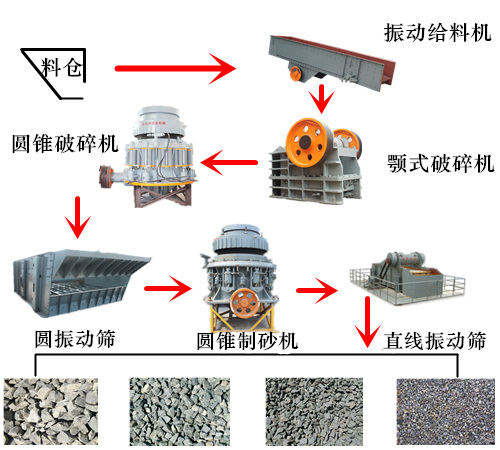 制砂生產(chǎn)線需要根據(jù)不同的工藝要求來配置設(shè)備。一般情況下,常用的設(shè)備有振動(dòng)給料機(jī)、顎式破碎機(jī)、圓錐破碎機(jī)、反擊式破碎機(jī)、立軸沖擊式破碎機(jī)、振動(dòng)篩以及其它的配套設(shè)備等,每種設(shè)備都有不同的型號(hào)以及適用物料。